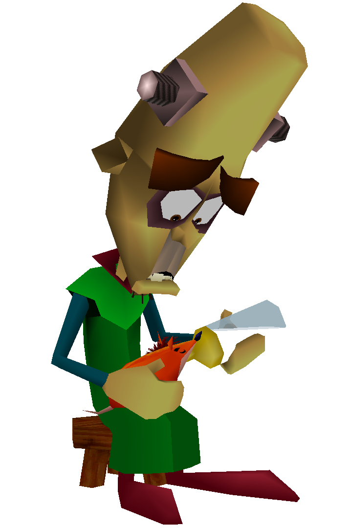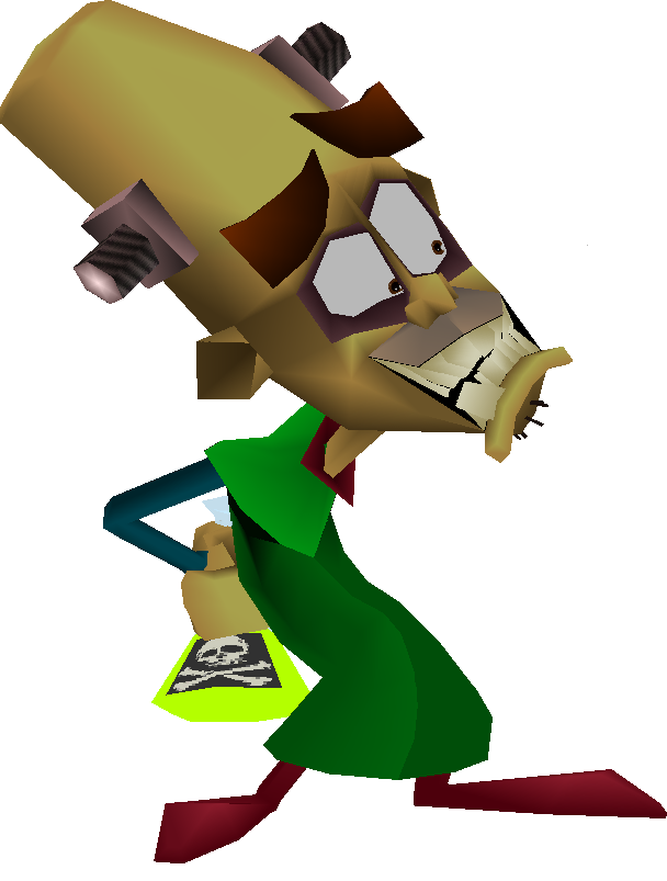 AFFILIATIONS: TEAM BANDICOOT, DOCTOR ROO, KOMODO BROS.LIKES: LEARNING, BAD JOKES, BEING PRODUCTIVE, CREEPY CRAWLY CRITTERS, LAUGHTER, CRASH, COCO, TAWNA, MIXOLOGY, PUPPETRY, THE BLUES, FEELING APPRECIATED, PICTURES OF SAD CLOWNSDISLIKES: NEO CORTEX & AFFILIATES, THE GOVERNMENT (& MOST FORMS OF AUTHORITY), COMPUTERS, THE UNEXPLAINABLE (MAGIC!), BEING TOUCHED, BEING TOLD WHAT TO DO, SENSELESS CRUELTY, BULLSHIT, COWARDICE, HIMSELFCHARACTERISTICS: ECCENTRIC, GOOFY, SHEEPISH, SCATTERBRAINED, NEUROTIC, PARANOID, DISTRUSTFUL, MANIC-DEPRESSIVE, MISANTHROPIC, JADED (BUT NOT OVERLY CALLOUS), SHADY, DUBIOUS SENSE OF RIGHT AND WRONG, SELF-DEPRECATING, GUILT-RIDDEN, STUBBORN, STRONG-WILLED, CARING (TOWARDS THOSE HE CONSIDERS FRIENDS), STRONG PATERNAL INSTINCTS
